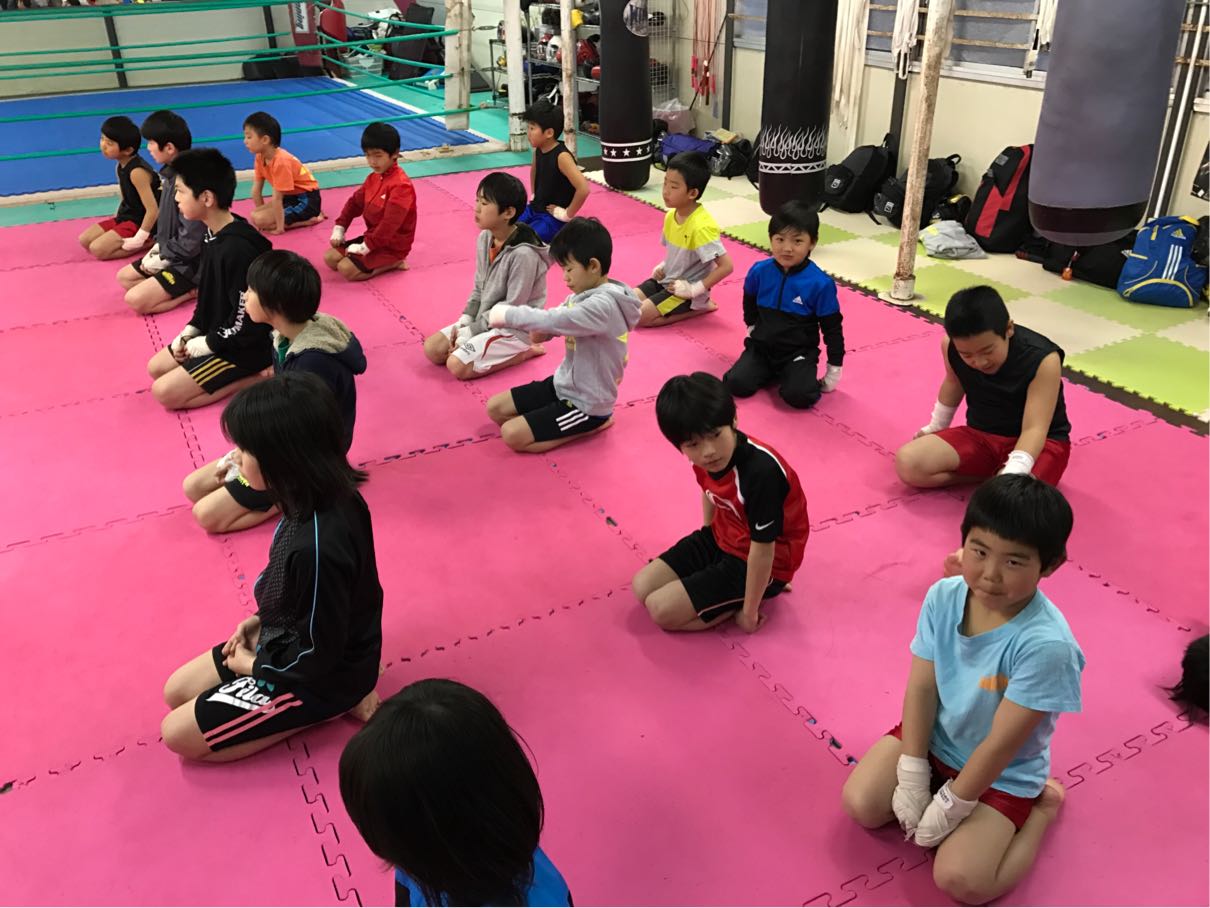 練習開始5分前に きっちり座っちゃったりなんかして^ ^ ウォームアップ、約束練習、 そしてボクシングスパー。 ユヅが素足で思いっきり蹴りそうになってました!あるあるそれ笑 ちゃんと正座出来てます^_^ |